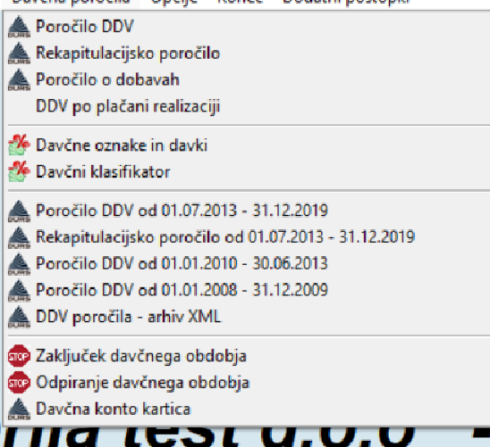 Arhiv poročil se nahaja v posebnih menijih, npr. Poročilo DDV od 01.07.2013 - 31.12.2019.