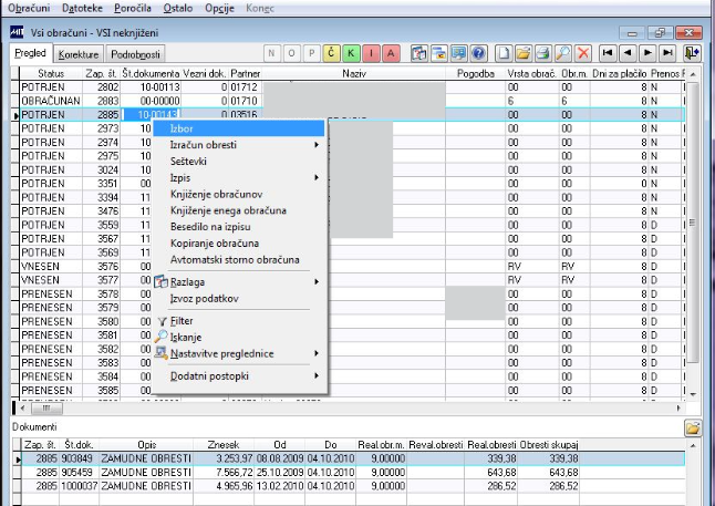 V primeru, da želimo spremeniti izborne pogoje podatkov na trenutnem pregledu, z opcijo Izbor ponovno izberemo nabor dokumentov po uporabniku in statusu.