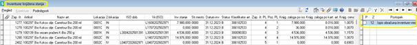 Po potrditvi izbornega okna z V redu, se odpre pregled inventurnih stanj.