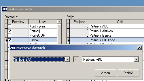 V primeru povezovanja več datotek v eno poročilo, je potrebno v programu določiti povezavo med posameznim parom datotek. Progra ponudi povezavo po povezovalnih ključih. V kolikor to spremenimo, je lahko rezultat take poizvedbe tudi napačen.