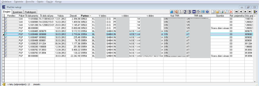 Pripravljene plačilne naloge prenesemo v izbrani format za banko in po potrebi pripravimo izpis specifikacije plačil za partnerja.