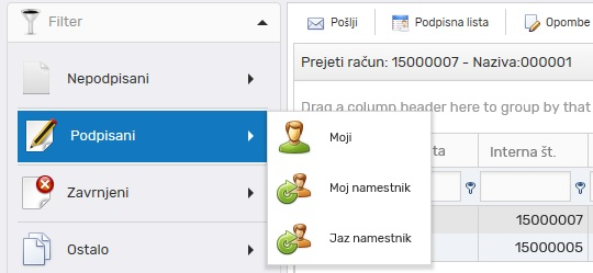 - Nepodpisani - omogočen izbor vloge Podpisnik ali Namestnik