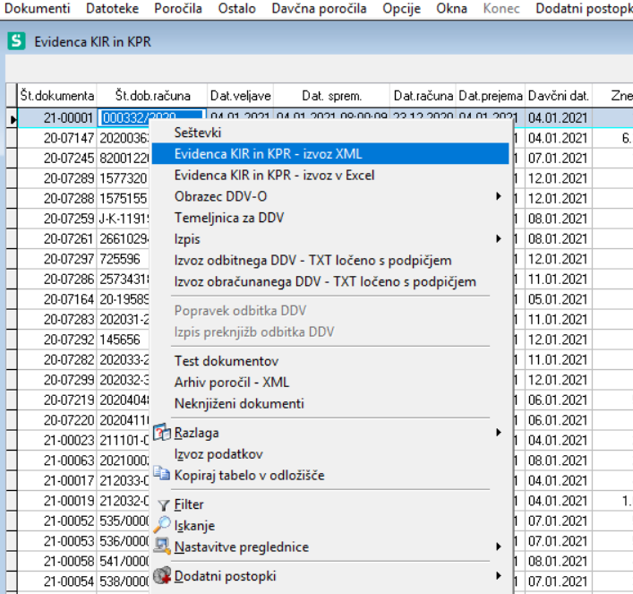 Meni omogoča pripravo davčnih podatkov, izpise za kontrolo podatkov in XML datoteko za FURS v strukturi zahtevani. V tem meniju se pripravi tudi XML datoteka za poročilo Evidenca KIR in KPR.