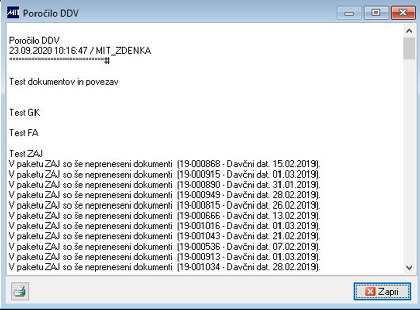 Po potrditvi izbornih pogojev program najprej, preden pokaže predogled, izvede dva testa:- test podatkov na dokumentih- test prenosa, obdobja, status dokumentov