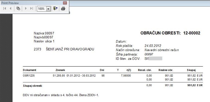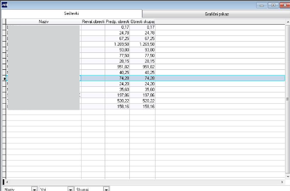 Na predogledu vidimo vse obračune, ki ustrezajo izbornim pogojem. Različna poročila so pripravljena v denem meniju.