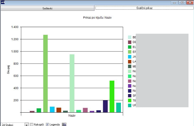 Opcija Seštevki ima dve različni možnosti pregleda.- Seštevanje zneskov s poljubnim pogojem