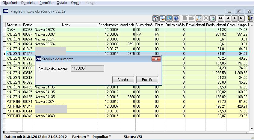 - Obdobje:Obdobje, ki smo ga datumsko omejili ima različen pomen. Lahko gre za datum veljave, datum zapadlosti ali datum knjiženja.