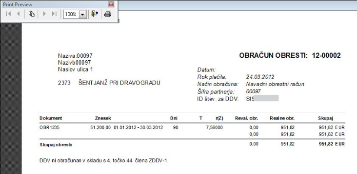 Ko imamo na pregledu pripravljeno poročilo z različnimi obračuni, lahko konkretnega, na katerem smo postavljeni, tudi izpišemo.