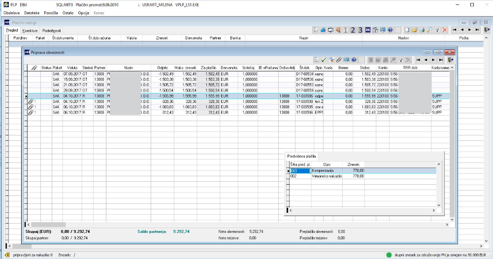 Z opcijo Priprava obveznosti program pripravi plačilne naloge z vsemi potrebnimi podatki za XML datoteko po ISO Sepa standardu.