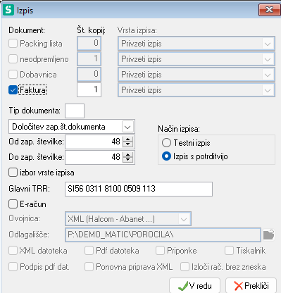 Števec fakture se določa ob izpisu dokumenta s potrditvijo.